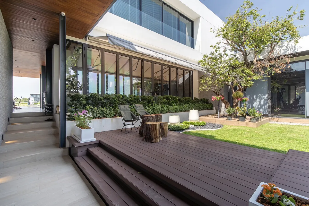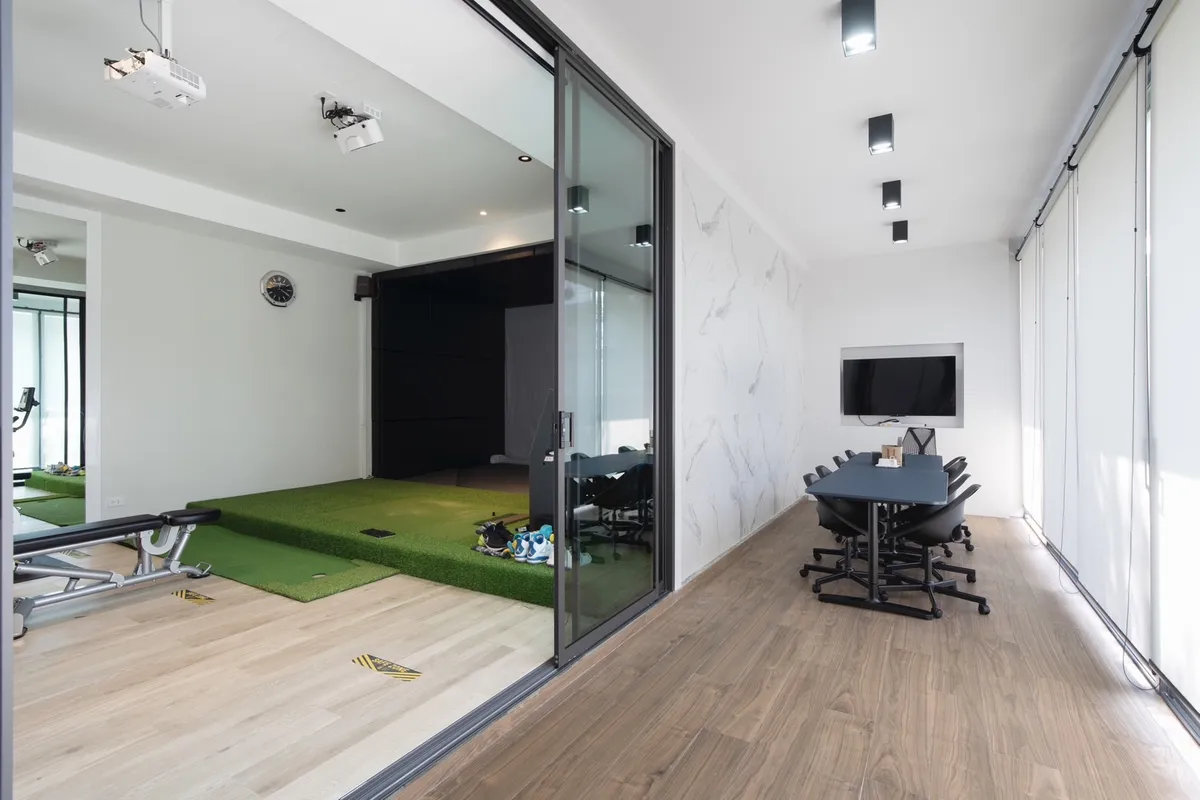 เรือนรับรองแยกเป็นโซนออฟฟิศ และห้องออกกำลังกายพร้อม Golf stimulator