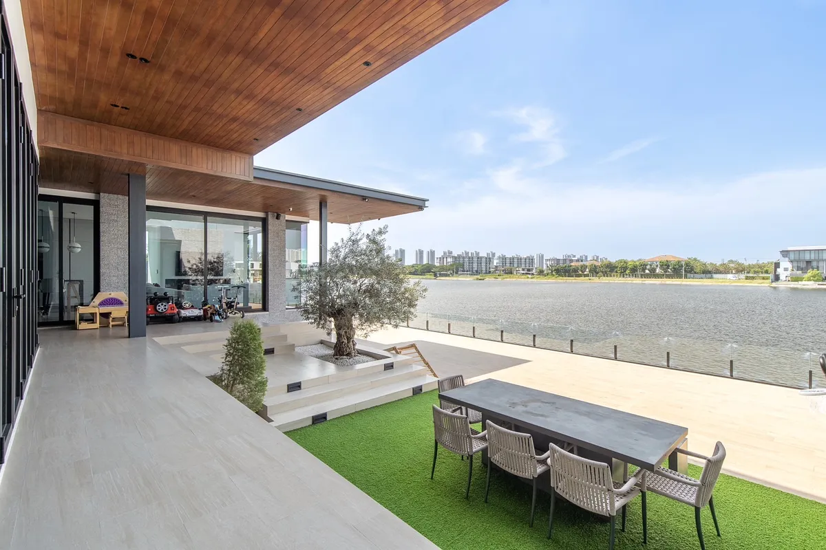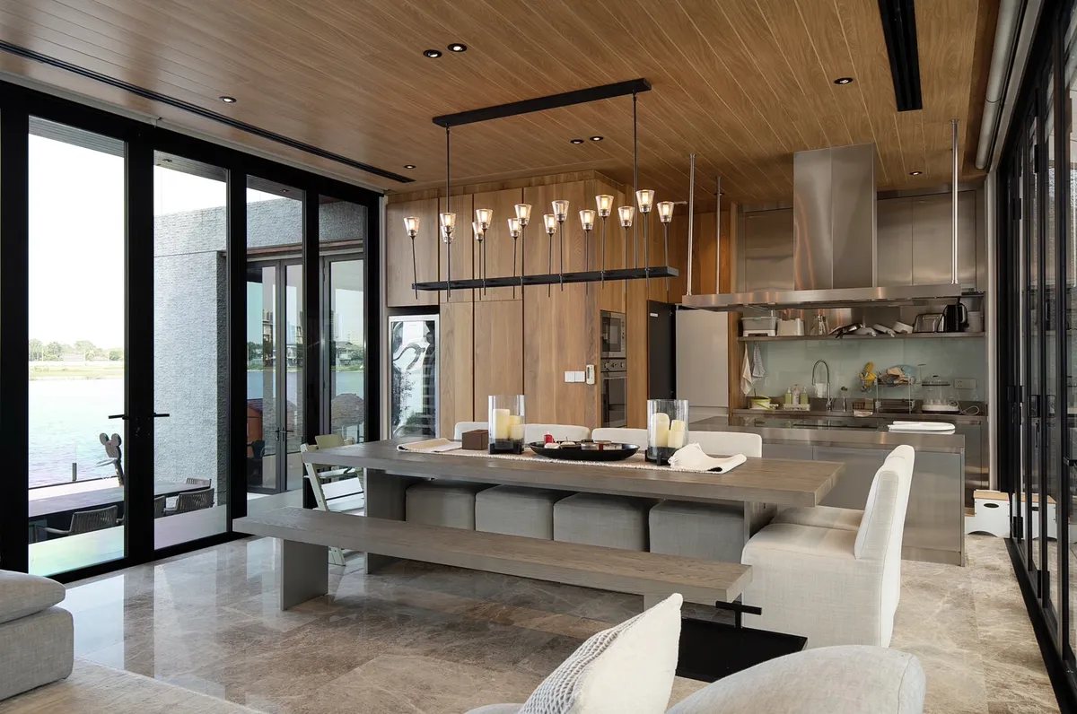 ห้องนั่งเล่น, พื้นที่รับประทานอาหาร,ระเบียงริมทะเลสาป สร้างบรรยากาศที่ผ่อนคลายและหรูหราลงตัว